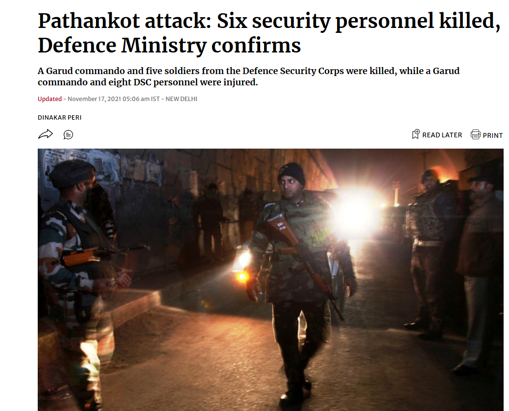 • (如上图新闻所示,2021年11月发生的帕坦柯特空军基地恐袭案中有6名守备军人员被打死。)